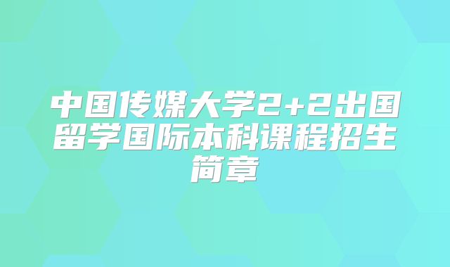 中心国际教育项目依托学校优质教育资源,对接英、澳、美、加等200余所海外知名高校,开设国际留学本科“1+3”“2+2”,硕士“1+1”等出国留学预科及预备课程,为有志于出国留学的莘莘学子提供以传媒、艺术专业为核心的全方位教学和服务。 查看详情>>